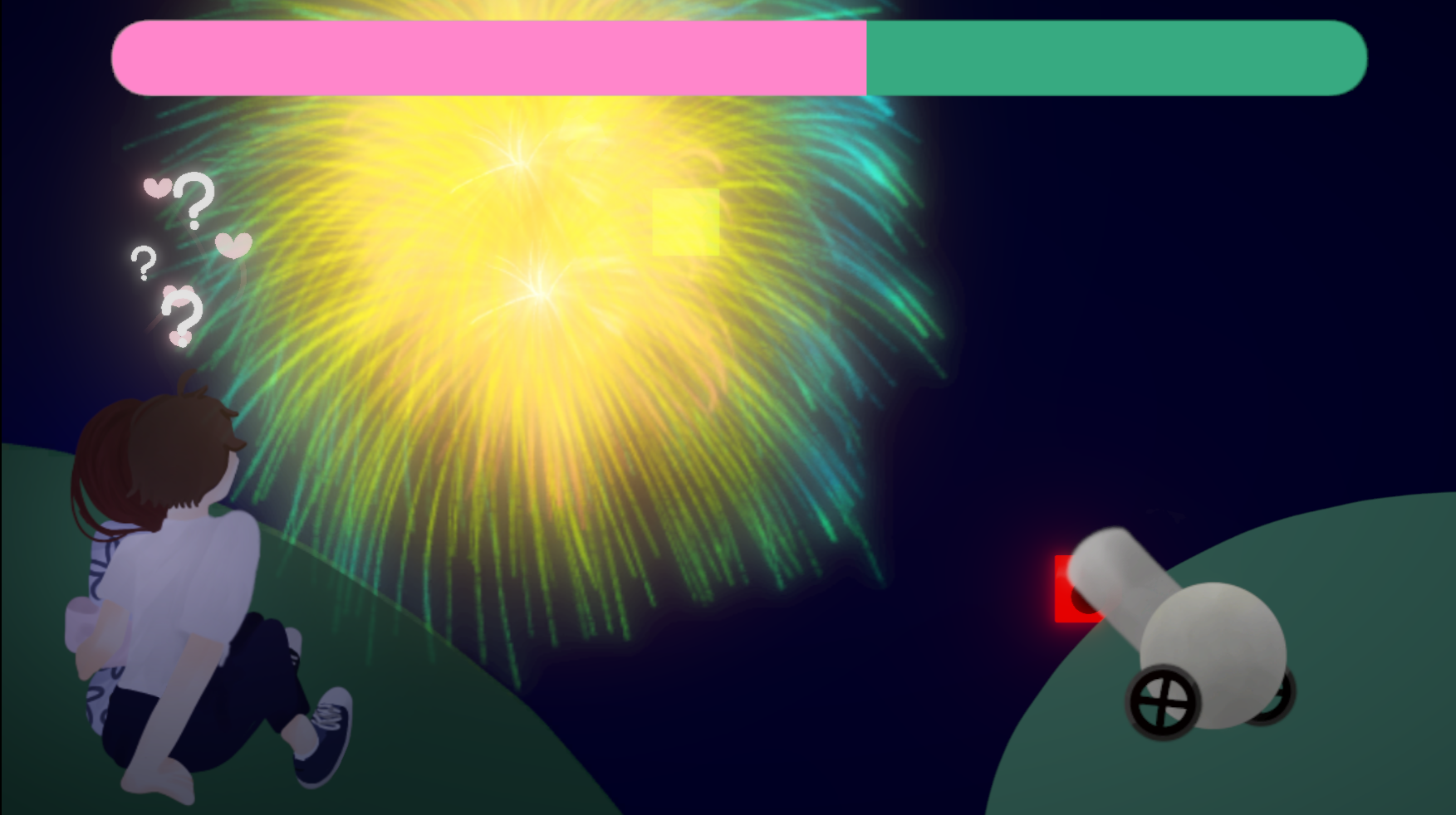 花火ゲーム側の玉処理とパーティクルの挙動の制作を担当しました。